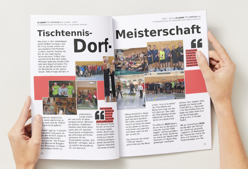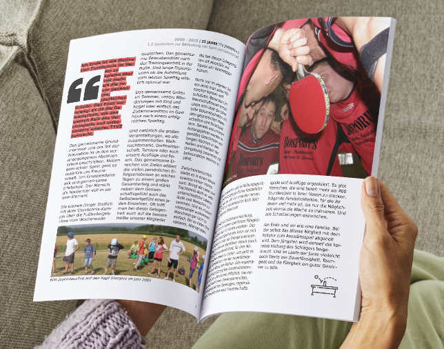 Der Tischtennisverein Zimmern e.V. hat ein Chronik als hochwertige Zeitschrift fast fertiggestellt!